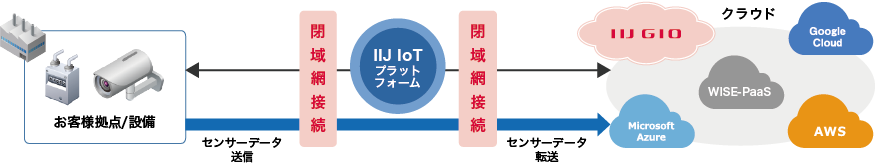 WISE-PaaSはグローバルに展開している台湾ADVANTECH社の産業向けクラウドサービスであり、 WISE-PaaS IIJ Japan-Eastは日本国内のIIJデータセンター内でサービス提供されています。お客様設備とWISE-PaaS IIJ Japan-Eastを接続する際は、インターネット経由でのご利用だけではなく、WISE-PaaSコネクタを用いることで閉域ネットワークでの接続が可能です。